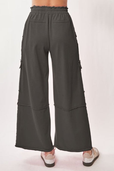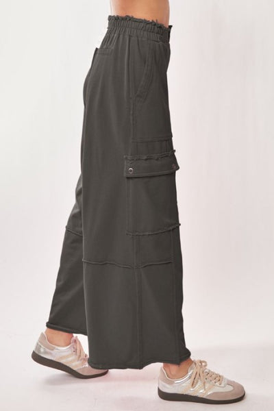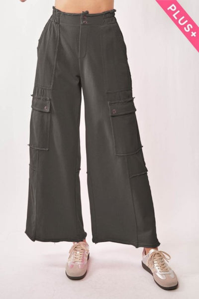 Introduce an elevated take on casual with these wide leg cargo pants. Designed with utility inspired pockets, stitched seam detail, and an elastic back waist for comfort, they combine function with modern style. The relaxed wide leg silhouette makes them versatile for pairing with tanks, knits, or blouses, offering boutique buyers a standout essential that balances trend-driven edge with everyday wearability.