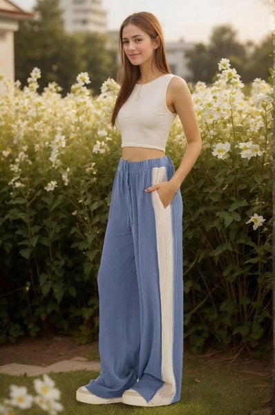 SOLID URBAN RIB CASUAL PANTS WITH ELASTIC BAND AND DRAWSTRING