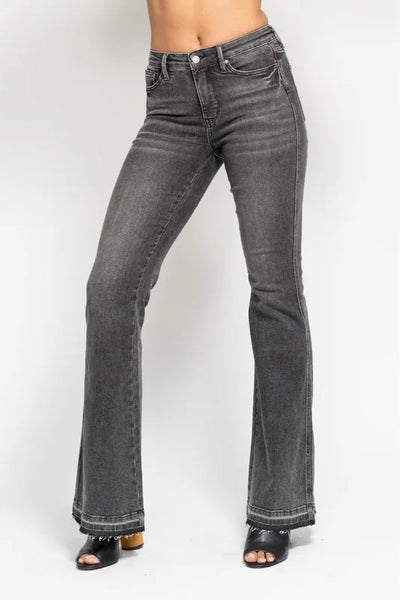 Judy Blue Full Size Mid Rise Tummy Control Washed Gray Release Hem Flare Jeans Plus Size