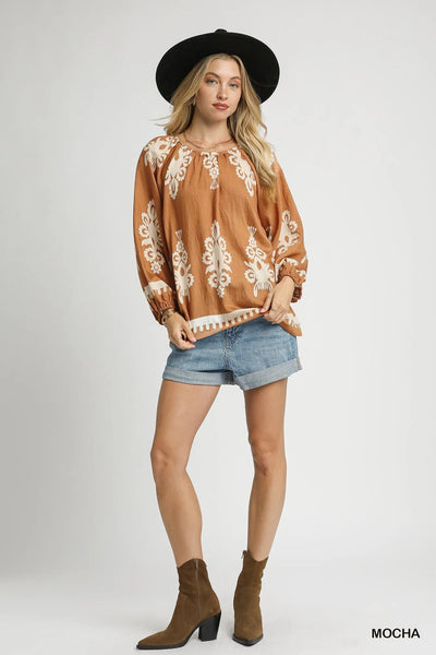 The Two Tone Border Print Top with Balloon Sleeves is a fashionable and trendy piece that combines a stylish border print with whimsical balloon sleeves. This top adds a touch of flair and personality to your wardrobe. The two-tone design offers a modern and chic look that is perfect for any occasion. Embrace the unique silhouette and playful detailing of this top for a standout and fashionable ensemble.